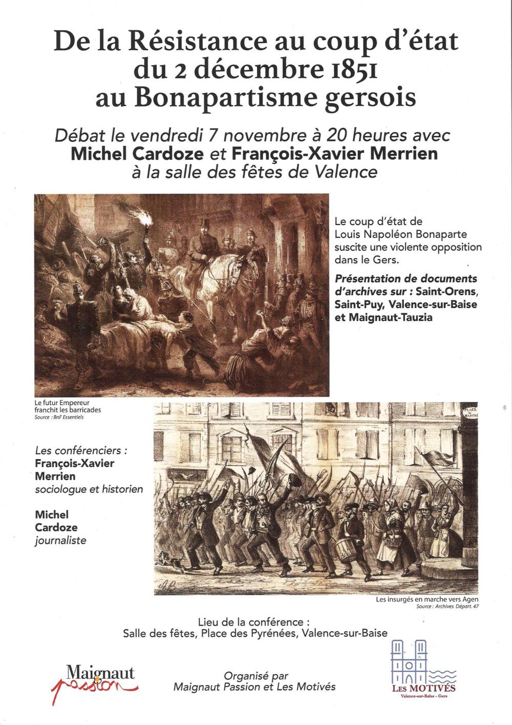 CONFERENCE : DE LA RESISTANCE AU COUP D'ETAT DU 2 DECEMBRE 1851 AU BONAPARTISME GERSOIS,
