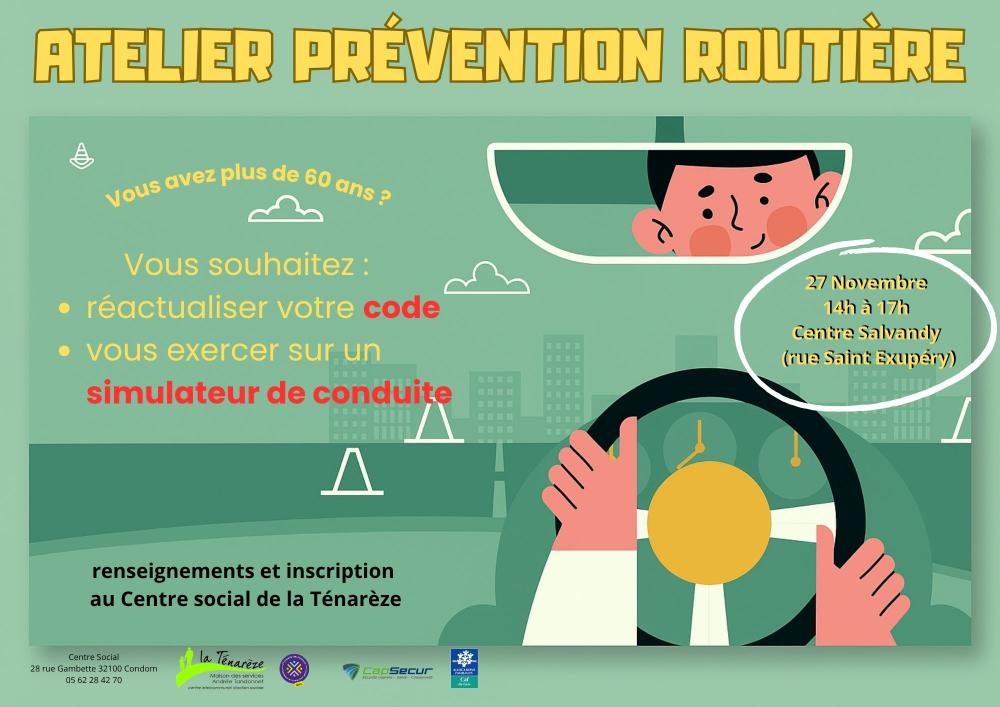 Vous avez plus de 60 ans, alors inscrivez-vous à l'atelier prévention routière proposé par votre centre social en partenariat avec le département du Gers et Cap Secur.