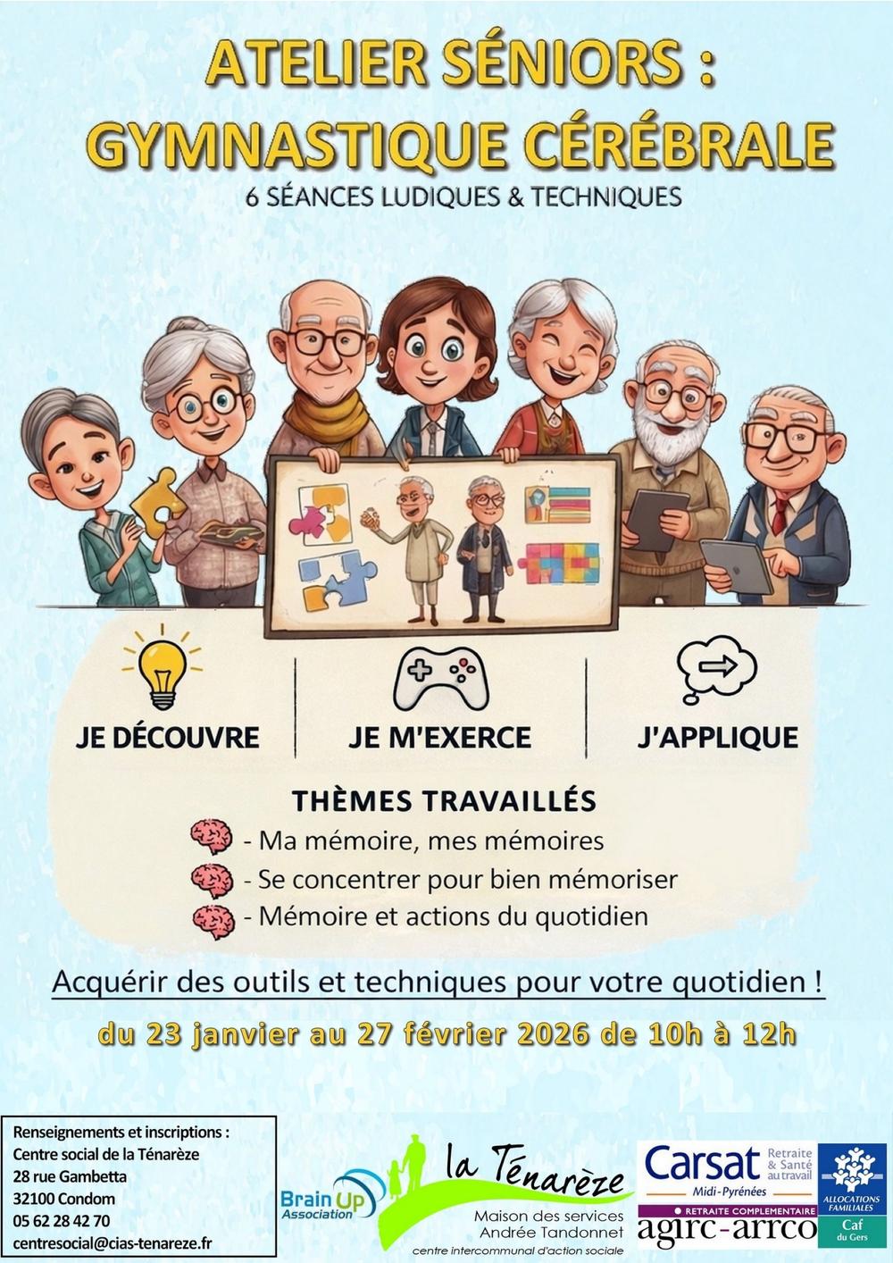ATELIERS SENIORS : GYMNASTIQUE CEREBRALE du Vendredi 23 janvier 2026 au Vendredi 27 février 2026 de 10h à 12h à Condom.