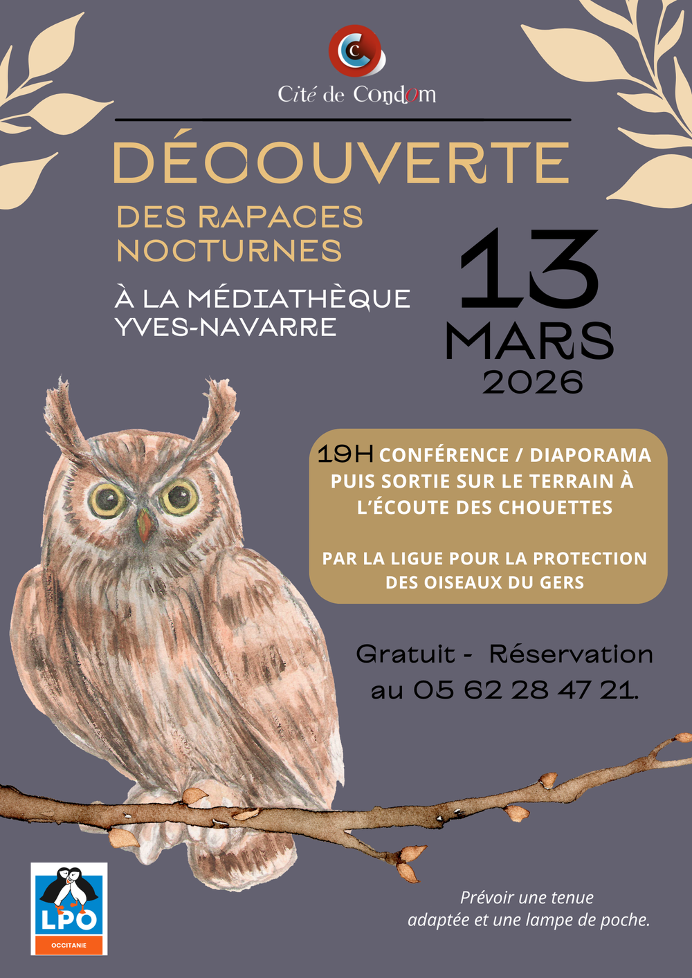 NUITS DE LA CHOUETTE : A LA DECOUVERTE DES RAPACES NOCTURNES, Vendredi 13 mars 2026 de 19h à 21h à Condom.