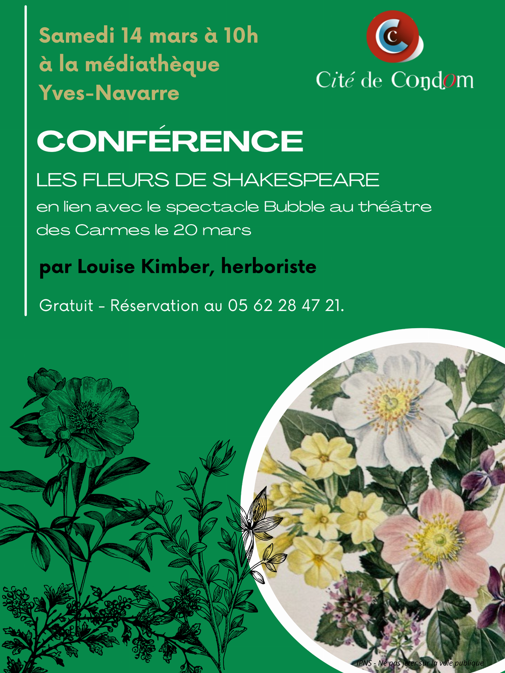 MEDIATHEQUE YVES NAVARRE - CONFERENCE "LES FLEURS DE SHAKESPEARE", Samedi 14 mars 2026 à partir de 10h à Condom.