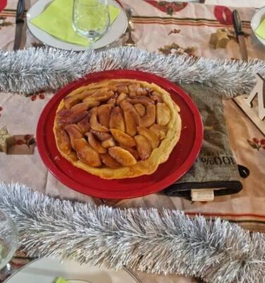 * Faire revenir dans un plat à tatin les pommes dans le sirop de sucre pour les faire confire et caraméliser, et flamber à l'Armagnac. Finir la cuisson au four pendant 30 mn à 160°.